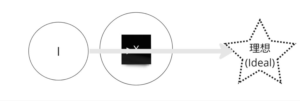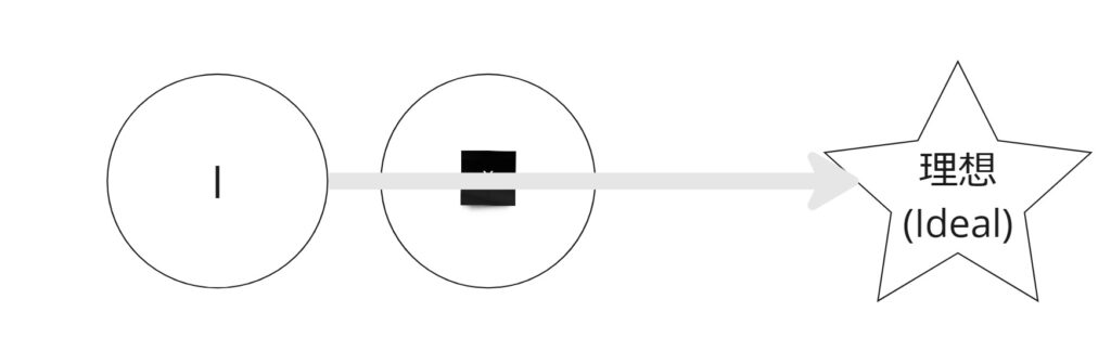 私は意志を以て思考し理想を目指しているが、Xという障害物が大きく行く手を遮っているので理想に辿り着くことができない。とるべき最短経路はXを迂回するか、Xをはっきりと認識して暗闇に光を灯してXという未知を減少させることにより理想がより近くみえてきて具象化されてくる。