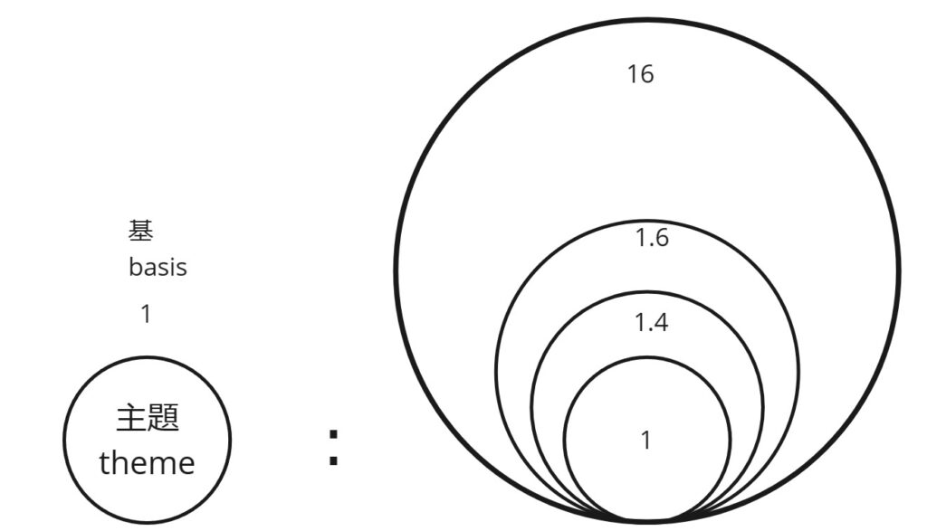 科学的というのは自らの経験則や緻密な計画といった論理式により願いの成就を試みるもので、「~かもしれない」と仮定を幾段にも積み重ねることに由る。1:を今現在の私と仮定してみると、願いが努力を要しない場合は:1≧となり、:1≦である:1.4や:1.6などは努力を以て成就しやすく、:16は成就し難い。美意識において1を私を含む同世代同集団の仲間たちとすると、私たちから見て1.4や1.6は比較して美しさを有しており、16ともなるとかけ離れているので理解しがたい。対人関係においても私を1とすると、1.4や1.6は理解の届くうちで、16ともなると理解するために努力を要する。